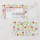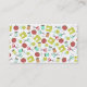 Un carte de visite orienté de couture comportant des illustrations des bobines du fil, aiguilles de couture, machine à coudre, goupillent le coussin, et les échantillons de tissu avec un rétro modèle de couleurs. Personnalisez le texte sur l'avant avec votre information de contact.