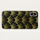 Dieses hübsche große Gatsby/Brüllen hat Zwanzigerjahre inspirierter iPhone Fallentwurf ein stilvolles, hoch entwickeltes wiederholendes Schwarzes und ein GoldMuschelskalamuster in der klassischen Edwardian/Kunst-Dekoart. Der Druckentwurf ist einfaches dennoch mutiges und nobles Schauen. Wählen Sie Ihre Telefonart vom Menü vor.
