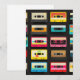 A vibrant pattern of colorful retro cassette tapes celebrating the golden era of analog music. This nostalgic design features a collection of vintage audio cassettes in bright, playful colors arranged in a bold repeating pattern. Perfect for music lovers, retro enthusiasts, DJs, and anyone who appreciates classic 80s and 90s music culture.