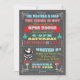 Invitation vos vilains ou amis à cette fête de Noël géniale avec une clause de Père Noël vintage, des ornements suspendus, une typographie amusante sur un arrière - plan de tableau noir. Alors mangez, buvez et soyez Joyeux avec l'invitation stupéfiante.