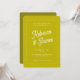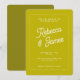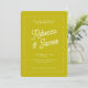 This wedding invitations is a bold choice for modern couples, featuring retro inspired font for the couple's names and a strong color palette with shades of chartreuse green, all finished off with a wavy frame. This wedding invitation design is fully customizable by you (text and colors) and part of a wedding stationery suite with matching items!