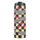 Retro-Checkerboard-Design mit Blume Thermosbecher