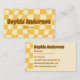 Stand out with this retro-inspired checkered business card featuring a bold mustard yellow color palette and groovy 70s typography. The wavy checkerboard pattern adds movement and personality, while the layered vintage-style lettering gives your name a strong, confident presence.