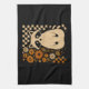 Retro Checkered Halloween Raccoon Geschirrtuch