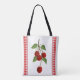 Die Retro Cherries Tote Tasche ist mit einem Acrylgemälde aus Kirschen mit einem roten Gingham Streifen auf jeder Seite für einen Vintagen Look ausgestattet.