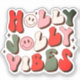 Retro Weihnachten Holly Jolly Vibes Trendy Holidays Stickers enthält den Text "Holly Jolly Vibes" in einem Retro-Skript in rot, grün und rosa Akzent mit Sternen und niedlichen glücklichen Gesichtern. Entworfen von ©Evco Holidays www.zazzle.com/store/evcoholidays