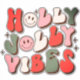 Retro Weihnachten Holly Jolly Vibes Trendy Holidays Stickers enthält den Text "Holly Jolly Vibes" in einem Retro-Skript in rot, grün und rosa Akzent mit Sternen und niedlichen glücklichen Gesichtern. Entworfen von ©Evco Holidays www.zazzle.com/store/evcoholidays