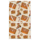 A fun holiday late 70s-early 80s retro illustrated pattern with cassette tapes of holiday mixes, intricately detailed ice skates, ornaments, gifts, and candy canes.