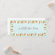 Ein farbenfroher, skurriler Geschenkgutschein illustriert mit bunten Weihnachtsbaumleuchten auf hellblauen Leinenbildern - ideal für besondere Anlässe oder Winterferien.