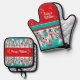 Retro Christmas Ornaments - Customizable Ofenhandschuh & Topflappen-Set