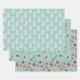Retro Weihnachts-Set 1 Aquamarine Weihnachtsverpackung Papier Blätter haben drei verschiedene handgemalte Muster. Sie haben Retro-Weihnachtsbäume, Retro-Weihnachtsschmuck und Retro-Weihnachtsgeschenke mit aquamarinem Hintergrund. Sie können die Muster auf dem Packpapier-Blatt größer oder kleiner machen. Diese Designs sind ein niedlicher Weg, um Ihre Urlaubsgeschenke unter Ihrem Weihnachtsbaum in diesem Jahr aufzurichten.