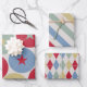 Diese Geschenkpackung verleiht ein Vintages Retro-Ambiente mit gedämpften Farben und klassischen Formen. Ein sehr vielseitiges Papier für Geburtstage, Babyduschen, nur weil, und Feiertage. Drei Designs sind im Lieferumfang enthalten: Kauf, Streifen, Polka-Punkte und Harlequin-Muster.