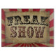 Freak Show Poster mit Retro Zirkus Freak Show mit Vintagen Zirkuszelt roten Streifen und marquee fotografierten Buchstabenleuchten. Großartiges Dekor für ein Bar- oder Halloween-Party-Dekor.