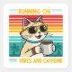 Retro Coffee Cat Vibes - Funny Caffeine Lover Quadratischer Aufkleber