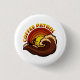 Kaffeepatrol. Surfen Sie mit einer Tasse Kaffee und reiten Sie eine Kaffeewelle mit einem Sonnenuntergang im Hintergrund. Retro 70er bedrückte Stil.