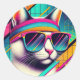 Retro Coole Katze Runder Aufkleber