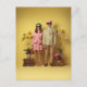 Retro-Paar in pastellfarbenen Kleidern und Sonnenbrillen und gelbem Hintergrund