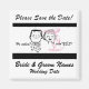 Ein Retro-Stil Save the Date Hochzeitsmagnet mit einer schwarzen Linie, gezeichnet von einer Braut und Bräutigam und Text, die "Bitte Save the Date!" und "Er fragte! Ich sagte JA!" Sie können einfach Ihren Hochzeitstermin und Ihre Namen zu diesem anpassbaren Save the Date Magnet hinzufügen.