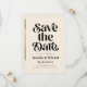 Retro und elegante Save the Date-Karte mit bohem Schriftart, der auf einem cremefarbenen Hintergrund "Save the Date" weiß steht. Sie können ein Foto auf der Rückseite hinzufügen.