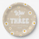 Retro Daisy Flower Wild & Three 3rd Birthday Party Pappteller