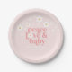 Retro Daisy Pink boho Peace Love Baby Shower Pappteller