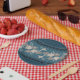 Retro Denim-Beschaffenheit mit Spitze Pappteller