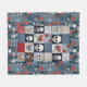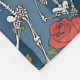 Retro Denim Patchwork mit Rose Skulls Skelette Fleecedecke
