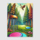 Retro-Disc-Golfplatz mit Adler, der über die Kiefern fliegt, ai Art mit Vintagen Farben und Camping-Ambiente.