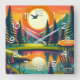 Retro Disk Golf Sunset and Trees Quadratische Wanduhr