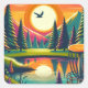 Retro Disk Golf Sunset and Trees Quadratischer Aufkleber
