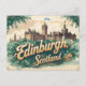 Diese Vintage Postkarte vereint das Soul von Edinburgh, Schottland - von der ikonischen Burg und den gewundenen Steinalleen bis zur dramatischen Skyline und dem historischen Charme. Es ist in sanften Retrotönen gestaltet und eignet sich perfekt für Sammler und Reisende, die zeitlose schottische Schönheit schätzen.