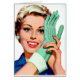 Eine Retro Hausfrau zieht ihre Gummihandschuhe für ein Haus putzendes Projekt über und sagt, "ich fühle mich wie Aschenputtel,…, das alle meine Träume haben gekommenes wahres."