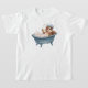 Retro Eichhörnchen Kinderduschen T - Shirt. Das Eichhörnchen des Cartoon sieht lächerlich elegant aus und genießt eine bläuliche Abkühlung in einer Retro-Badewanne mit einer blauen Duschhaube.