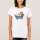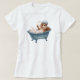 Retro Eichhörnchen Kinderduschen T - Shirt. Das Eichhörnchen aus Cartoon mit Duschhaube ist in einer Retro-Badewanne untergebracht, umgeben von Blasen, und tut so, als wäre es eine Berühmtheit im Urlaub.