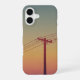A clean retro electric pole illustration using soft shapes and muted colors.