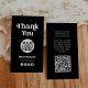 Ces cartes de remerciement branchées et boho noir de petite entreprise de marque et d'emballage présentent une typographie rétro blanche, sur un arrière - plan noir foncé. Il y a des icônes de médias sociaux, de la place pour votre logo, et un endroit pour un code QR à l'arrière. Vous pouvez adapter le message pour offrir une remise à vos clients. Un look à la fois professionnel et élégant, parfait pour n'importe quel type d'occupation, comme le créateur de contenu, le maquilleur, coiffeur, styliste, et plus encore.