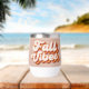 Dieses Retro-inspirierte Falldesign zeichnet sich durch die Phrase "Fall Vibes" in einem kühlen 3D-Schriftart aus, der sofort Aufmerksamkeit erregt. Der Text ist in warmen Herbstfarben mit Orangen-, Rot- und Cremetönen gestaltet, wodurch ein Gefühl von Tiefe und Dimension entsteht, das die Wörter aus dem Hintergrund Pop. Die Vintage Typografie mit ihren sanften, abgerundeten Kanten verleiht dem Design ein nostalgisches Ambiente, das an die klassische Ästhetik der 70er Jahre erinnert. Die spielerischen Schatten und Farbkontraste verleihen dem Design eine dynamische, auffällige Optik.