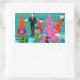 Retro Familie schneidet die Weihnachtsbaumklammern Rechteckiger Aufkleber