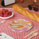 Retro Fantasy Swirl Abstrakt rosa Orangencreme Pappteller