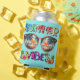 Retro farbenfrohe Sommercamps Can Cooler mit Sonnenbrillen, Strand, Palmen, Sonne, Ananas und Wassermelonen.