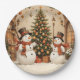 Retro Festive Snowmans und Weihnachtsbaum Pappteller