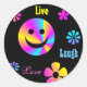 Retro Regenbogen Gesicht und Blume Aufkleber, die sagen, Live, Lachen, und Liebe. Sie können die Wörter ändern.