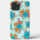 Retro floral iPhone 13 Pro Max Fall mit aquamarinen, orange und korallen Farbpalette.
