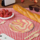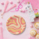 Retro Flüssig Abstraktes Muster rosa gelb Pappteller