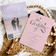Wenn Retro auf moderne Touch trifft. Eine weiße und blassrosa Retroskripteinladung mit einer klassischen und eleganten Retro-Vintagen Kalligraphie in klassisch elegantem Grau und Blassrosa. Fügen Sie Ihr Paar Foto auf der Rückseite (oder löschen Sie es, wenn Sie keine Fotos gewollt), und fügen Sie Ihre QR-Code, für uAwg, Details, und verwandeln Sie diese Einladung zu einem erschwinglichen alles in einer Hochzeitseinladung.