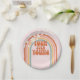 Retro inspirierte Vier Jüngste 4. Geburtstag Party Teller mit Hippie-Stil Regenbogen, Gänse und boho Schriftart und Farben.