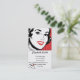 Geschäftskarten, die eine Vintage Fünfzigerjahre Illustration einer Frau hält ein Zeichen kennzeichnen. Hintergrund ist ein niedliches weißes und rotes Polkapunktmuster. Fertigen Sie ihn mit Ihrem eigenen Text besonders an. Retro cooles!