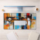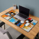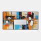 Transform your workspace with this visually stunning desk mat. The artwork features a complex, constructivist-inspired layout of vertical lines and geometric circles in vibrant blue and orange hues. This sleek accessory provides a smooth surface while adding a highly professional, creative vibe to your desk.