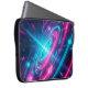 Safeguard your mobile workstation in spectacular sci-fi fashion with this vibrant and highly protective laptop sleeve. Featuring a breathtaking digital artwork of an electric cosmic pulse, this sleeve instantly transforms your computer into a futuristic statement piece. The design showcases an intense vortex of glowing pink and blue neon rings, pulling the viewer into a deep, atmospheric space portal.
