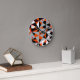 Ein fabelhaftes Retro-inspiriertes geometrisches Muster in hübschen Grautönen, Orange, Schwarz und Weiß. Eine moderne, trendige und dekorative Wanduhr, die auf einem Vintagen Stil basiert.